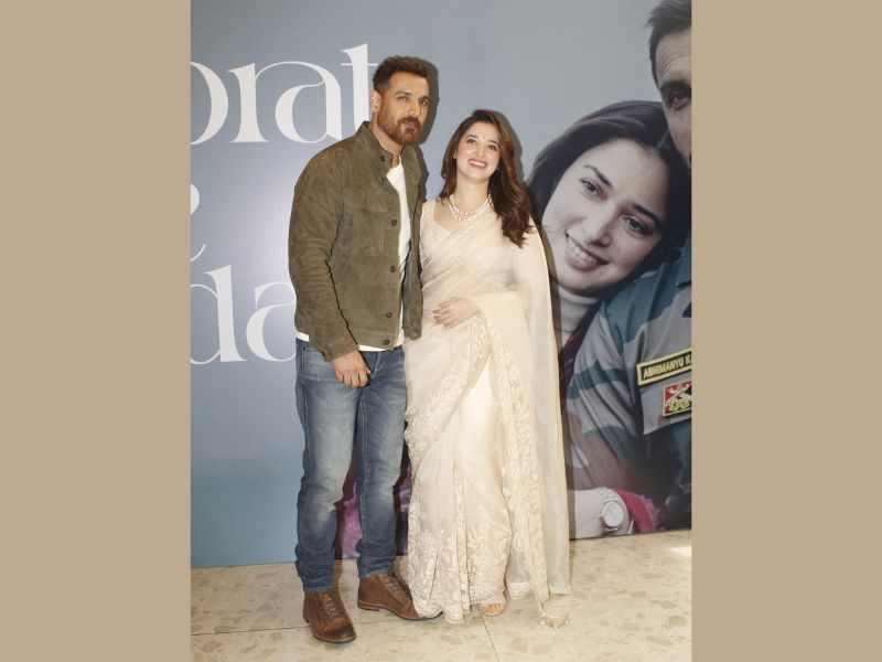 John Abraham And Tamannaah Bhatia Snapped At The Launch Of Their Song Zaroorat Se Zyada From Vedaa