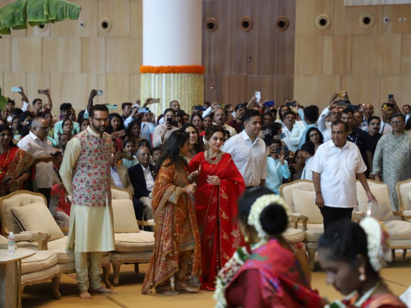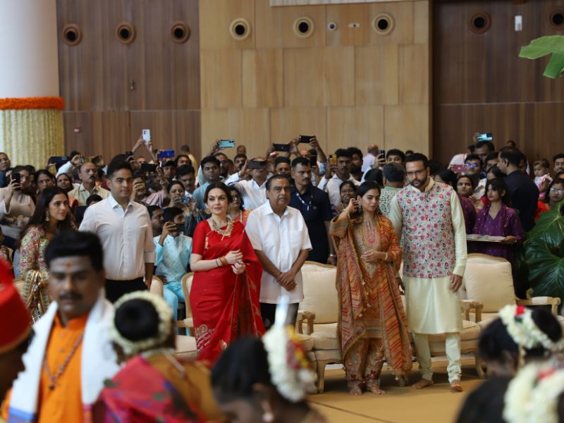 #AkashAmbani with wife #ShlokaAmbani and #IshaAmbani with husband #AnandPiramal arrive together to attend the mass wedding of the underprivileged, organized by the #Ambani family as part of #AnantbhaiAmbani and #RadhikaMerchant’s pre-wedding celebrations 💕✨💫